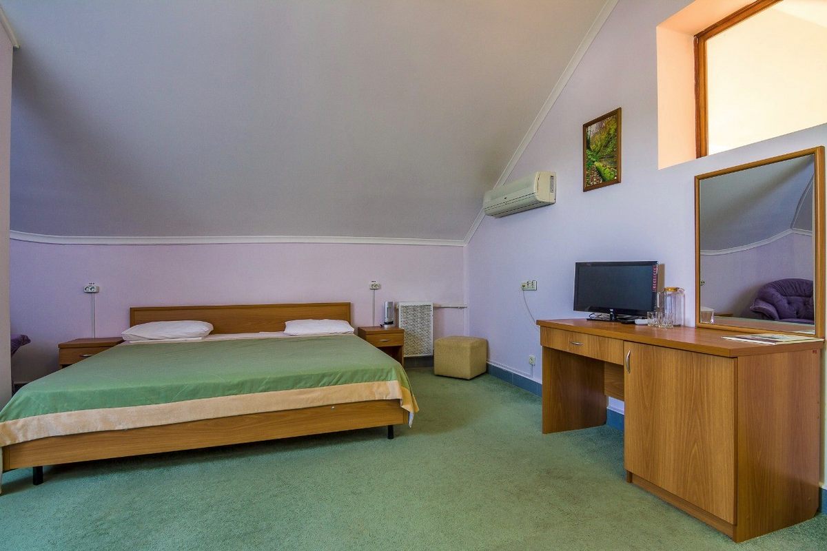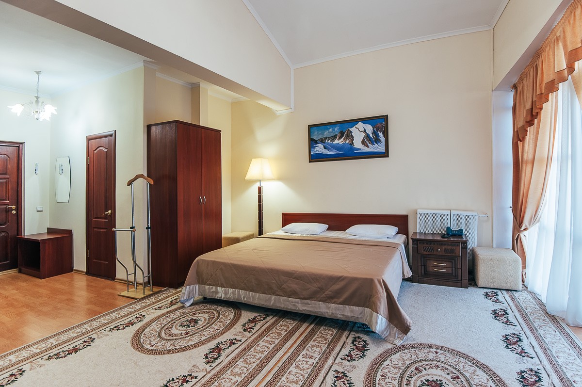 В номере: большая двуспальная кровать или две полутороспальных, кондиционер, электронный замок, телефон, телевизор с кабельными каналами, холодильник, письменный стол и стул, багажная тумба, сейф.